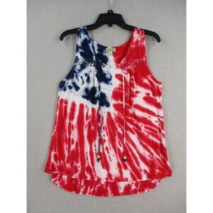 One World Womens Red & Navy Tie-Dye Sleeveless Top M