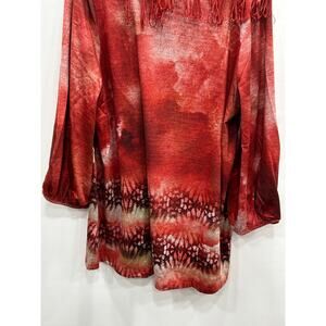 One World Womens Red Tie Dye Long Sleeve Tunic Top With Matching Scarf Size 2X