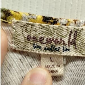 One World Women's Size Large Abstract Gold Yellow V-Neck Asymmetric Hem Top