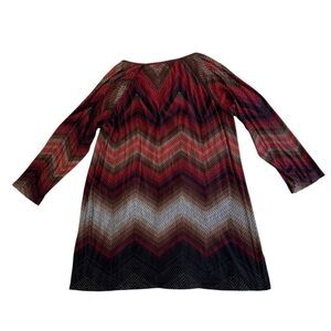 One World Women's Bohoemian Multi Color V Neck Long Sleeve Top Size Large