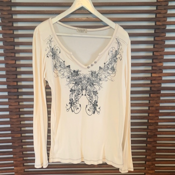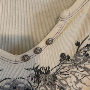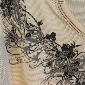 Ribbed long sleeve top with graphic design on front. Ideal for versatile styling. Great condition. 💥Offers welcome💥