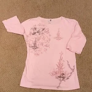 One World tshirt, 3/4 sleeves, with rhinestones.