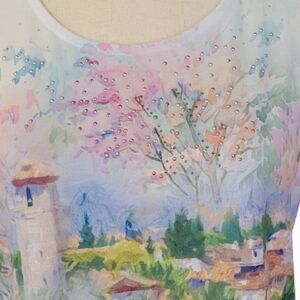 One World Bright Rhinestone 3/4 Sleeve Village On A Hill Top Size MP