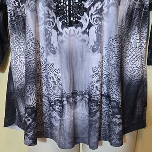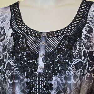 One World Women's 3/4 Sleeve Top Size 2X Lace Applique Dark Fairy Whimsigoth
