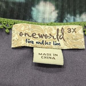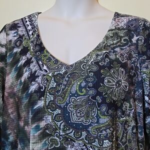 One World Womens Paisly Asymetric Top Plus Size 3X Beaded Y2K Fairy Forest Artsy