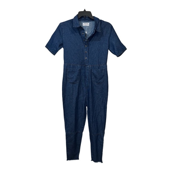 One X One Teaspoon Blue Denim Utility Jumpsuit Size 26 NWOT Cutout back raw hem