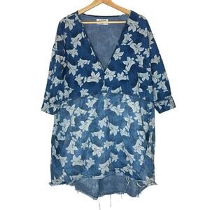 One X One Teaspoon Epiphany Denim Floral Dress Blue XS Oversized