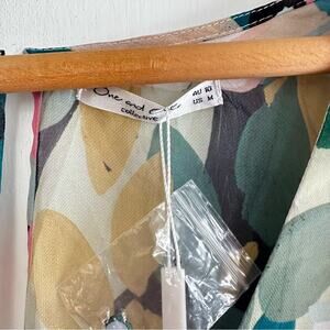 One and Only Collective Floral Deep V Neck Balloon Sleeve Mini Dress Medium