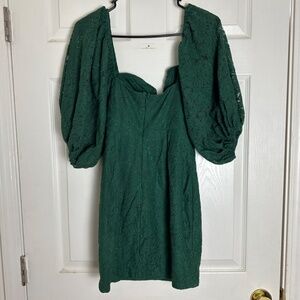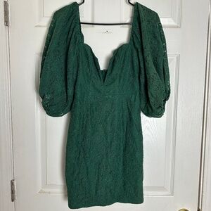 One and Only Green Good Vibes Puff Sleeve Deep V Lace Mini Dress Women Size XS