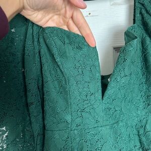 One and Only Green Good Vibes Puff Sleeve Deep V Lace Mini Dress