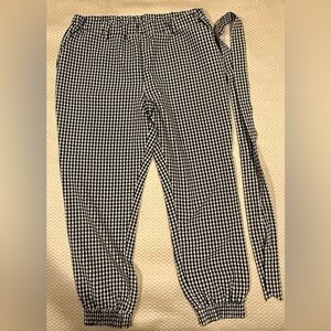 Elevate your wardrobe with these chic black and white houndstooth pants. Perfect for any occasion, these pants offer both comfort and style.