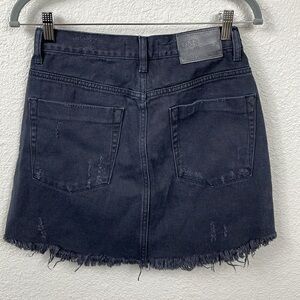 One by One Teaspoon 2020 Mini Skirt Black Denim Jean Distressed High Rise 28