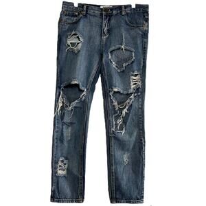 One by One Teaspoon Awesome Baggies Jeans Low Rise Relaxed Destroyed Blue 28x30