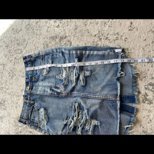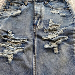 One by One Teaspoon Jean denim Skirt High Rise Fitted Mid Length distressed 25