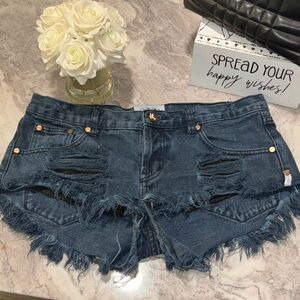 One by One teaspoon X Color blue Jean. Upgrade your wardrobe with these stylish denim shorts. Featuring a chic blue color, these shorts are perfect for casual outings. Excellent condition..