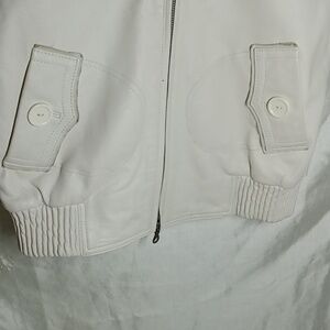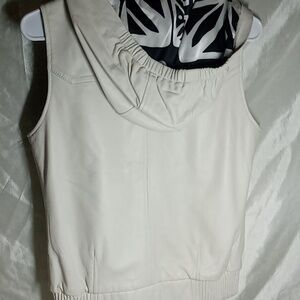 one girl who hooded leather vest women's size small. In great condition! super soft. soft cream color.