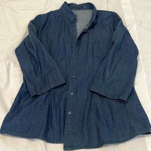 One jeanswear junior szXL denim button front adjustable sleeve elastic back EUC