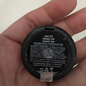 One nyx eyeshadows and two ultra pearl mania loose eyeshadows the eyeshadow shade is skinny dip and the loose eyeshadows i dont have the name but they are really pretty! And all three are in great condition used tro or three times