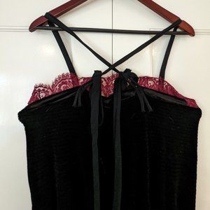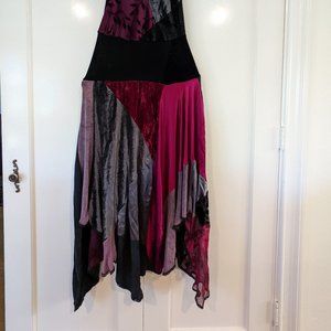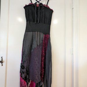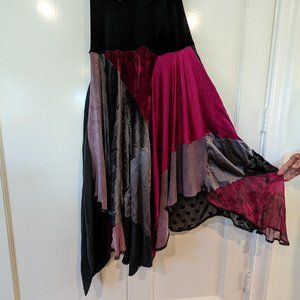These pieces are all handmade of fine silks, velvets, laces and other materials by a Florida based designer (currently trying to locate her information). Thus dress has never been worn. It's in excellent condition. Size small/medium.