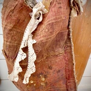 Crocheting details are vintage and hand-dyed.