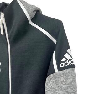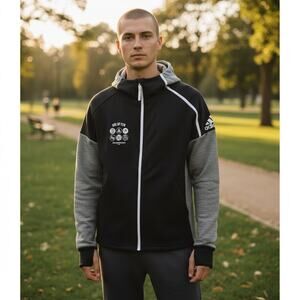 One of Few Adidas Hooded Knit Track Jacket Black Gray Full Zip Men's Small