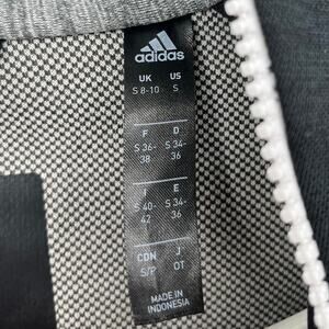 One of Few Adidas Hooded Knit Track Jacket in Black and Gray. Full Zip, Front Zip Pockets. 61% Polyester, 30% Recycled Polyester. Men's Size Small.