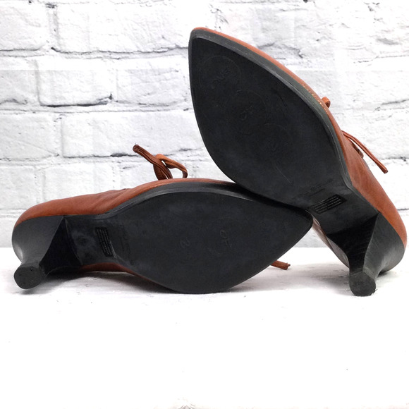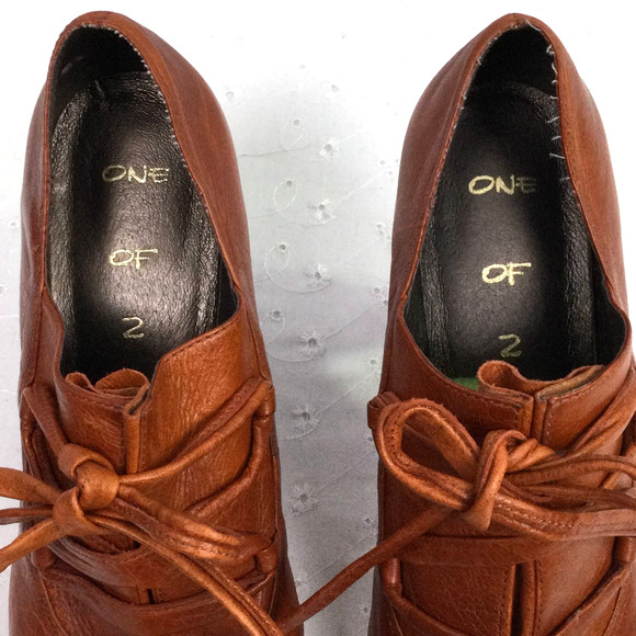 One of Two Brown Leather Lace Up Pointed Toe 4" Heeled Shoe Women's Size 39
