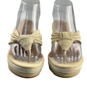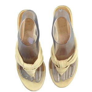 One of Two TPU SOLE Platform Wedge Thongs Leather-Linen Ivory Women Eu 38 US 7