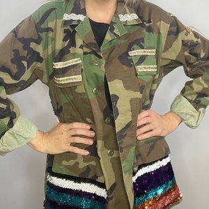 One of a Kind Camo Sequin Embellished Army Jacket by Hi Gorgeous S/M/L