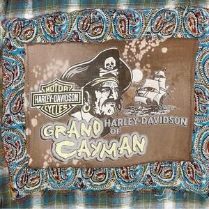 Item is Reworked from Excellent Condition pre owned clothing. Purchased from @emptyhanger, thick flannel 100% cotton shirt, Harley-Davidson graphic Tee, pirate motif, grand cayman Harley-Davidson, embroidered and custom stitching, button up closure. PLEASE SEE ALL PHOTOS. Measurements taken laying flat: