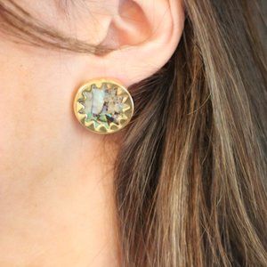 Pristine condition - vintage vibes but newly made. Never worn. Beautiful Mother of Pearl Sunburst earrings in a sunburst setting with 18K Gold plating. Reflect light SO beautiful. Wish I could upload a video because the pictures and flash just do not do it justice. Listing Anthro for coverage! Free people vibes as well.