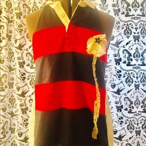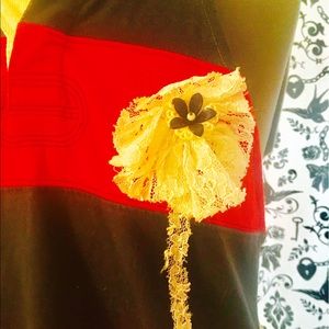 Handmade by ME upcycled Polo with vintage lace back and vintage flower button