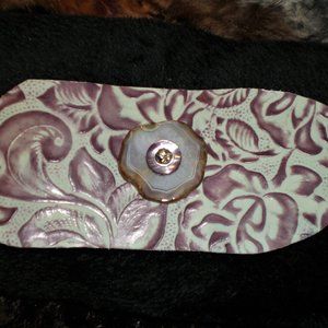 One of a Kind Wide Embossed Leather Cuff with Gorgeous Agate and more