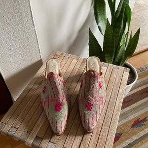 Lovely one-of-a-kind Kilim mules. Only tried on inside.