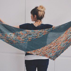 Wrap yourself up in this gorgeous, hand-knit shawl. Yarn is of the highest quality - hand dyed wool in USA.