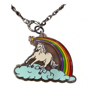 One of a kind upcycled handmade lucite rainbow Unicorn necklace