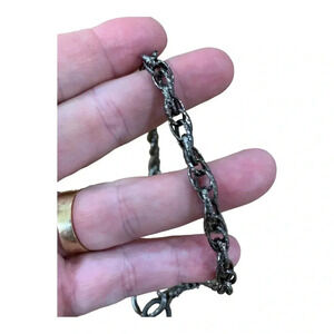 The chain is a gunmetal grey link with a large back clasp