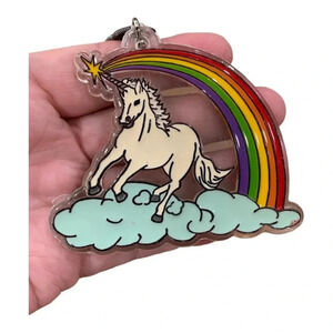 The lucite piece is of a colorful Unicorn and rainbow.
