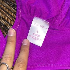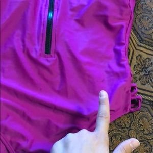 Super hot one piece bathing suit with low back. Functional zipper in the front & padding in the chest. Cute cut our detail on the hips as well. Small mark on the left hip as pictured, I haven’t tried cleaning. Perfect as a body suit with shorts too!