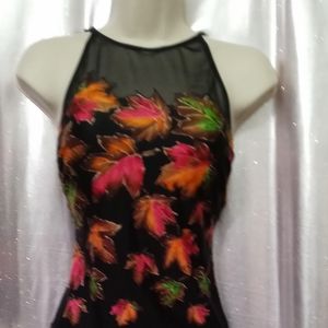 One piece verry pretty . says size 12 but im a small and it fits fine