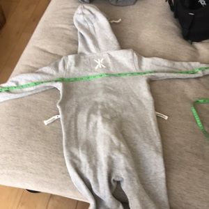 One piece onsies. Noreway Brand. Style, comfort, and quality. Excellent-not sure it’s been used. Two side logo’d zipper pockets. Two front slant style pocket. Full logo’d zipper front. Zips over the head. See measurements for size. Easily fit up