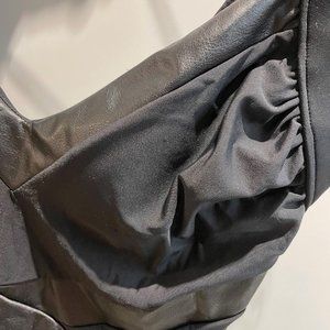 One piece swimsuit in black with faux leather details at the front with the slimming effect