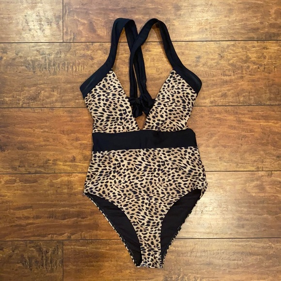 Size small leopard print suit. Never been worn.