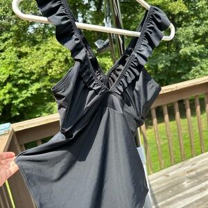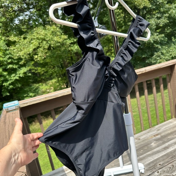 Pink Lilly black one piece with padded bust. Never worn. Size is Petite Small.