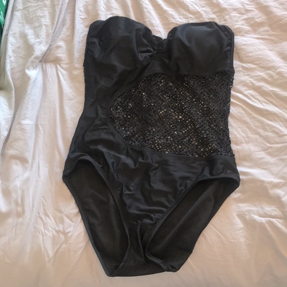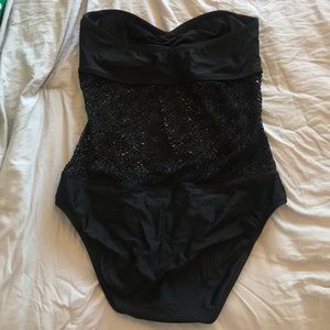 Cute one piece suit with mesh detail along the middle. Gently used. Make me an offer!