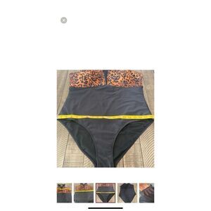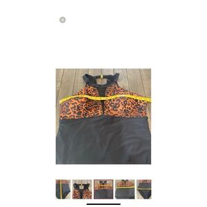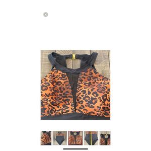 One piece animal, print, bathing suit with mesh and buckle halter enclosure very unique, very sexy. Wear it with With a wrap and some heels from my closet that match i mean come on