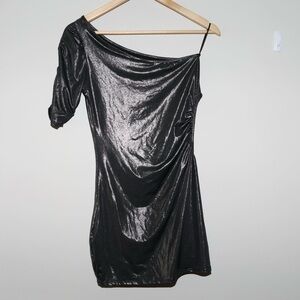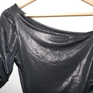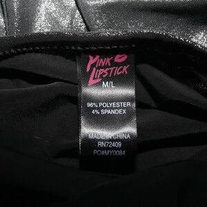 Asymmetrical long one shoulder costume top with cut out from the brand pink lipstick. Tag size is M/L. Sort of a black silvery metallic color. In excellent condition