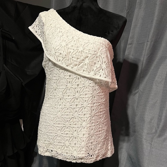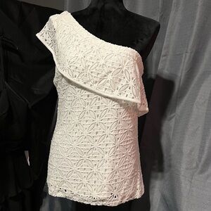 One shoulder White Lace Overlay Blouse by 7th Avenue Design Studio size M