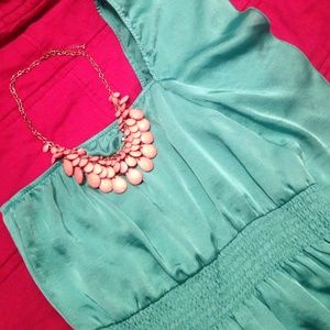 Like brand new! Only worn once! Turquoise, silk-like material. Looks super cute with the perfect necklace. Can be dressed up or down. (Necklace not included)
