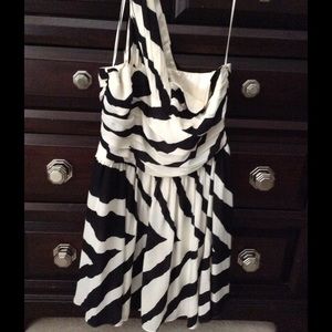 One shoulder chiffon zebra print dress